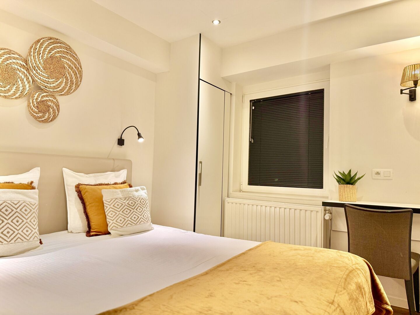Enjoy a wonderful overnight stay in one of our comfortable accommodations. The modern, colorful rooms are equipped with a bathroom with shower and toilet, a spacious desk with safe, a flat-screen TV, air conditioning and coffee and tea making facilities.