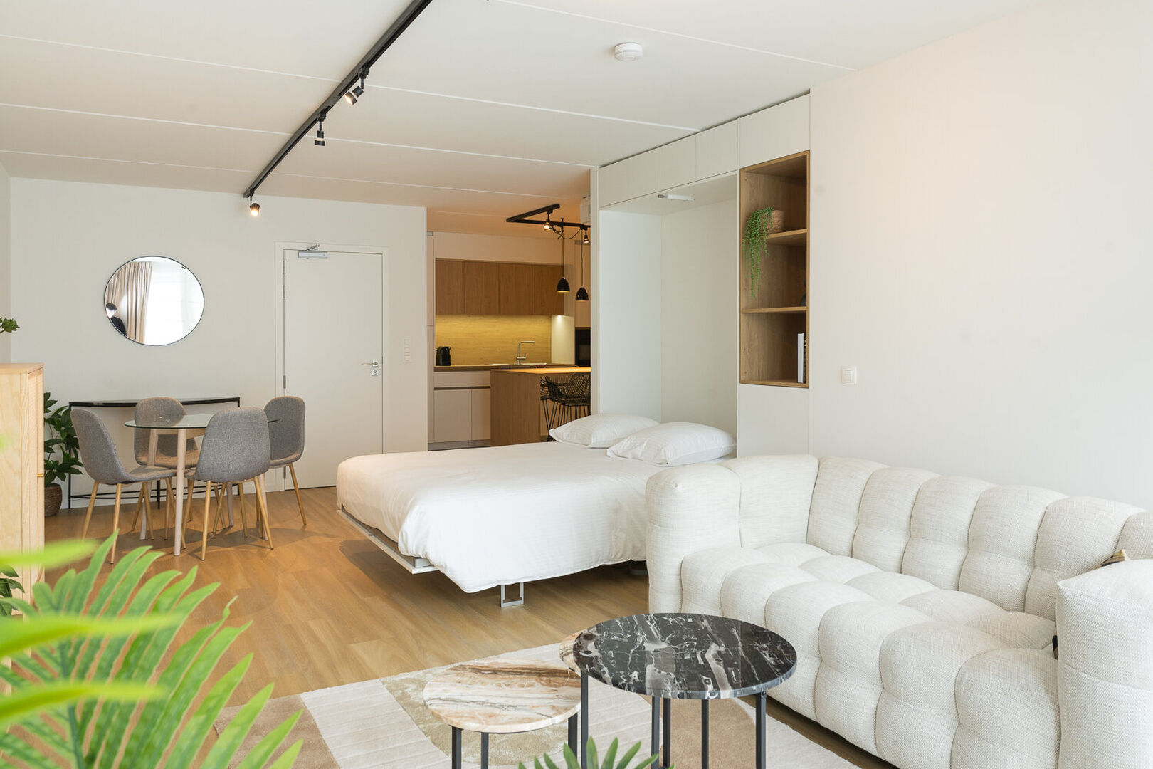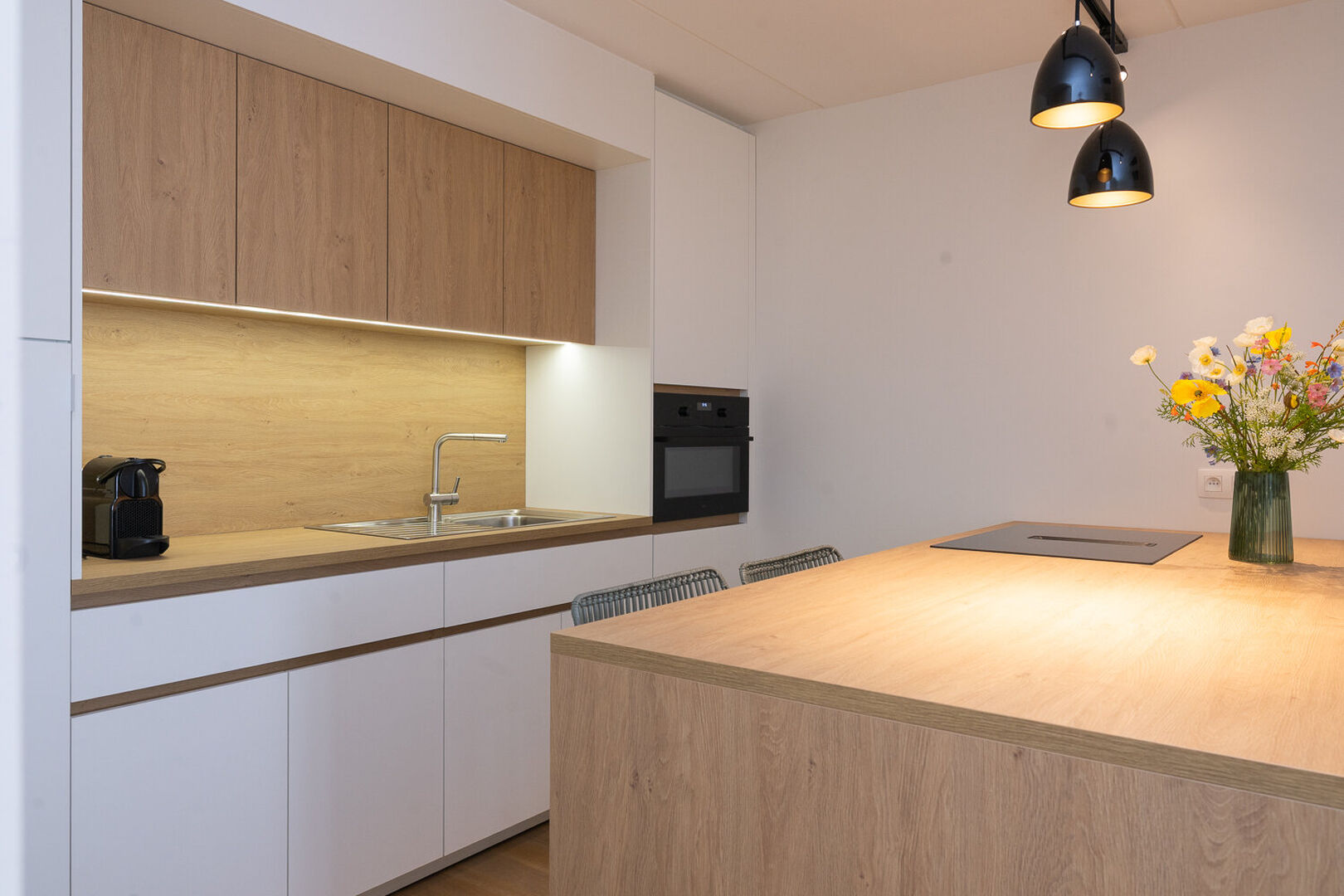 - Volledig ingerichte keuken met koelkast, vaatwasser, microgolf en combi-oven, keukengerei